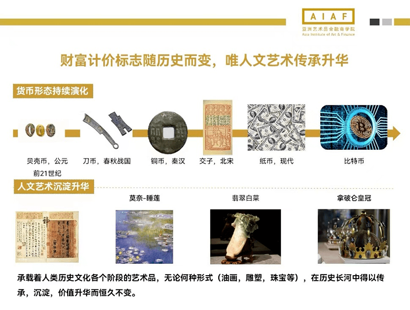 人类还有一个重要的创造就是发明了货币,它从诞生起就代表着财富!在漫长的历史长河中,人类社会的财富计价工具一直在不断变迁、更替。从最初的羽毛、贝壳货币,到战国刀币、秦半两、金锭、银元宝、宋代交子、银票、袁大头、印刷纸币,以及现在的比特币、狗狗币,数字人民币等林林总总、不胜枚举。我们看到计量财富的货币形态在不断持续演化,并随着发行货币主体兴衰而更替、基本都消失在浩瀚的历史长河中。
