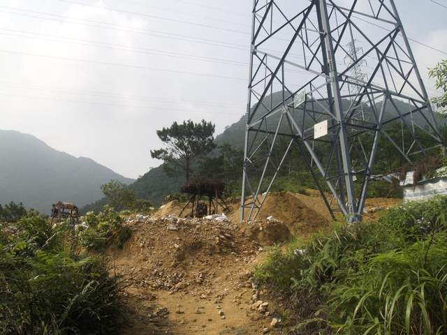 配图:这是供电部门在观音山毁林搭建的高压线塔,让大面积植被受损,露出刺眼的黄土。