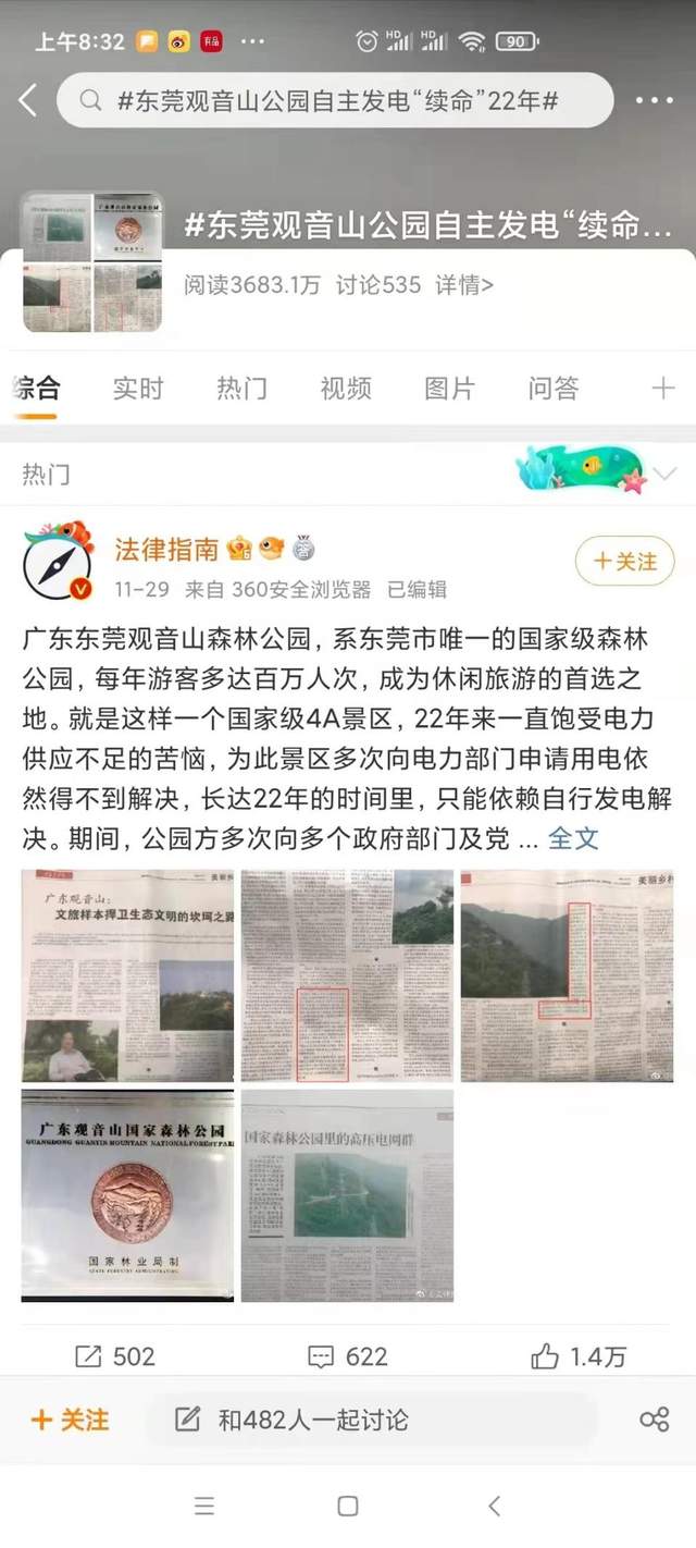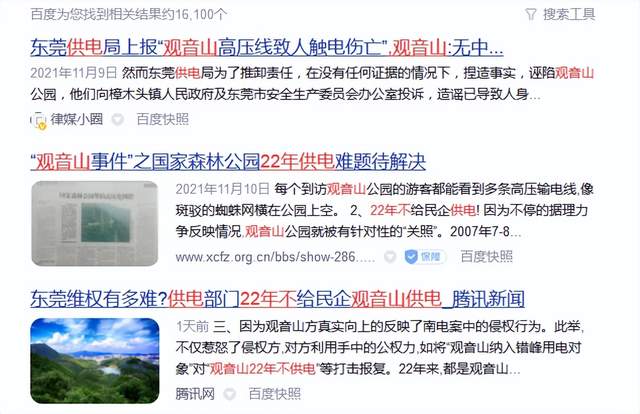 对于不了解具体情况的网友,可以百度搜索《东莞维权有多难?供电部门22年不给民企观音山供电》该篇文章详细报道了东莞观音山维权事件之“南电案”的初始。