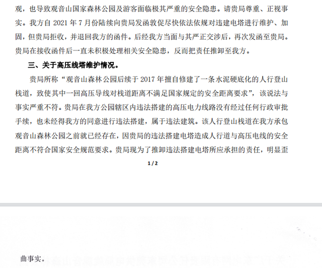 明明是对方毁林违建高压线电塔在先,却反而倒打一耙,血口喷人,指责观音山的旅游设施人行登山栈道修得离电塔太近,要求闭园整改。