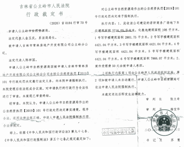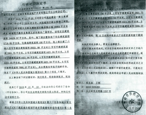 据了解:若轩广场是2018年公主岭市长会议纪要20个“三早”招商引资项目之一,该项目从2017年9月3日开工建设,到2019年10月15日竣工,在长达近两年的时间里,若轩广场这么大一个工程项目为何偏偏等到项目竣工,公主岭市自然资源局才下发一纸《行政处罚决定书》呢?