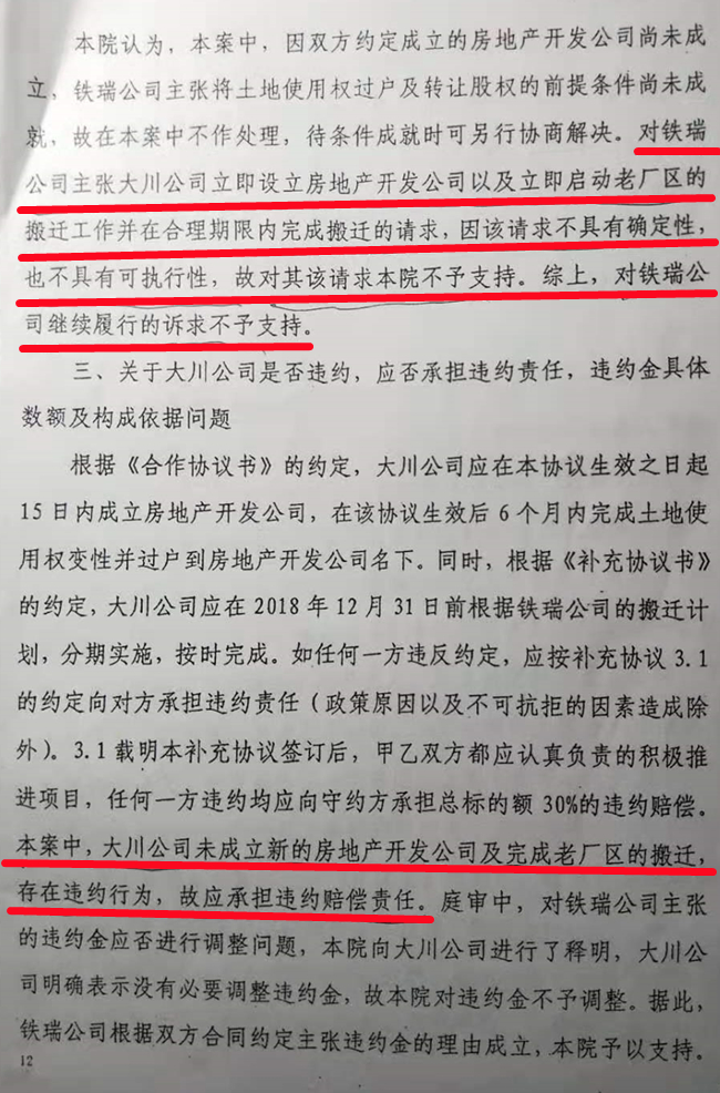质疑五:刘某玫法官把未变性为商宅用地作为虚构价值,判决大川公司赔偿房地产商1.43亿元违约金;再以工业性质的土地价值去执行法律程序,让房地产商不花一分一厘就让大川公司“光屁股出门”。请问:这算不算明火执仗的打劫?
