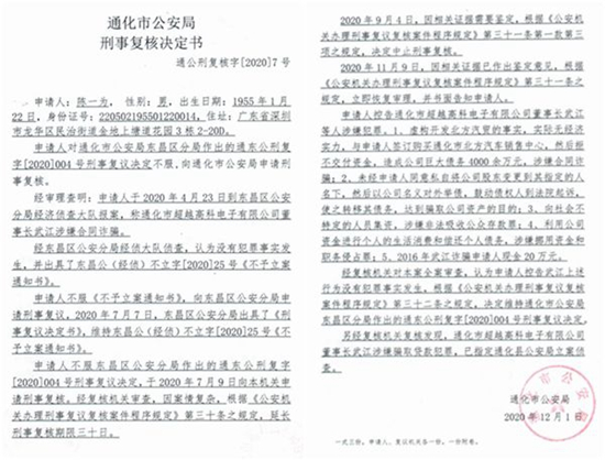 在被逼得走投无路的情况下,2020年4月22日,我才到东昌公安分局报了案……但是两个月后,令人匪夷所思的咄咄怪事发生了:东昌分局经侦大队在根本没有调查取证的前提下,竟以‘未发现犯罪事实’为由下达了不予立案通知书。对此,我不服,将此问题反映到通化市委和市政府,通化市一位主要领导作了批示,要求警方认真调查此案。但是,办案单位、复议、复核单位并没有找我调查,就先后再次做出了没有犯罪事实发生、不予立案的通知(详见东昌公【经侦】不立字【2020】25号)。我认为,通化公安机关的做法,是在保护犯罪,是对犯罪分子的公开袒护和包庇!其对法治环境和经济环境的破坏程度,远远超过武江等人的犯罪,是令人不能容忍的。”