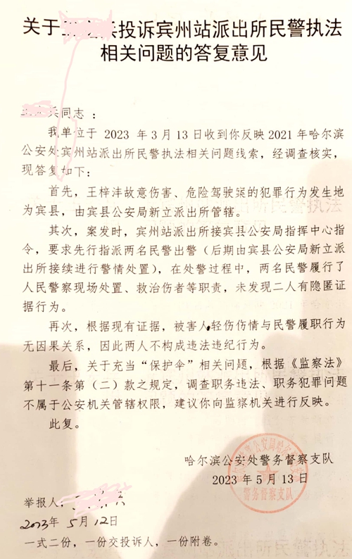 针对王雪东、马相云在执法过程中的严重不作为,已经涉嫌渎职的犯罪行为以及充当犯罪团伙保护伞的行为,辩护人已经向哈尔滨市铁路公安局、哈尔滨公安处警务督察支队进行了举报,在铁证面前,该督察支队竞认定二人不违法。