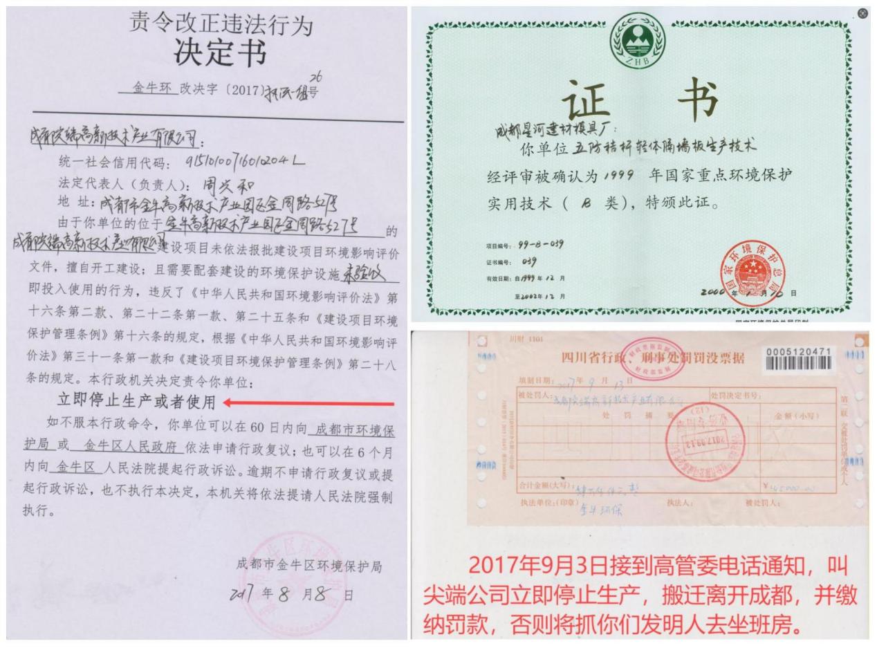 早在1999年就被原国家环境保护总局评审认定为国家重点环境保护实用技术(B类)并颁发证书的尖端公司却被成都市金牛区环境保护局勒令立即停止生产和使用至今
