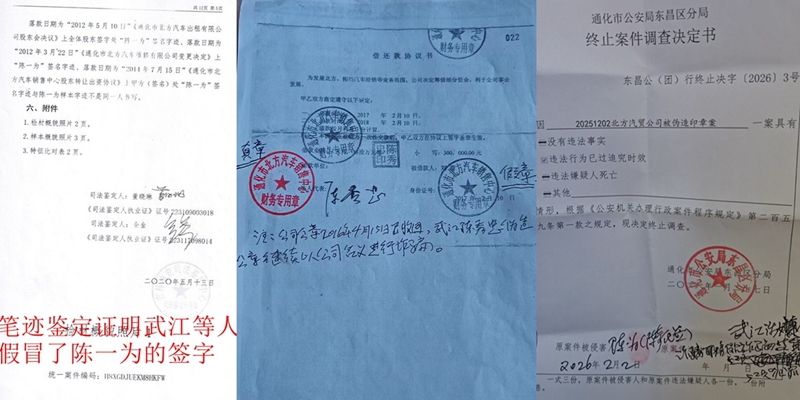 本站讯 2026年春节前夕,吉林省通化市北方汽贸集团(简称"北方汽贸")董事长陈一为,伫立在濒临破产的公司门前,手中紧攥着一叠沉甸甸的证据材料——司法鉴定书、嫌疑人确认书、法院判决书、公安机关立案文书……这些足以证明武江、陈秀忠等人涉嫌巨额诈骗的铁证,却未能将嫌疑人绳之以法。自2020年报案至今,陈一为历经公安机关三次不予立案、多次复议复核无果的困境,而涉嫌诈骗的武江,依旧在通化市面上自由活动。而该案早在2020年便被省委巡视组列为通化市两大重点举报信访案之一,此案今天的结果,不仅令陈一为十分尴尬,恐怕就连对此案做过批示的领导们和巡视组无地自容!