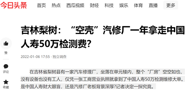 吉林梨树:“空壳”汽修厂一年拿走中国人寿50万检测费?