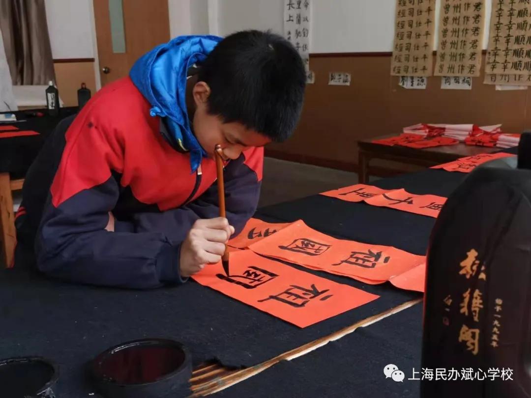 临近期末,对书法班和伏羲六、七班的学生根据学习水平安排学习写“福”字和“春联”。在最后几天时间里,要完成数百幅“春联”和数百个“福”字。让家长们带回家过年。时间短,任务紧,孩子们用书法课时间和午休的时间和老师一起拼到最一天才算完成任务。其实,期间很多孩子都写到手软,个别学生不想动笔。我们就用一个班写的春联成品与两位老师竞争看谁写得多,来调动大家。看到孩子们的拼劲,师生们乐在其中。