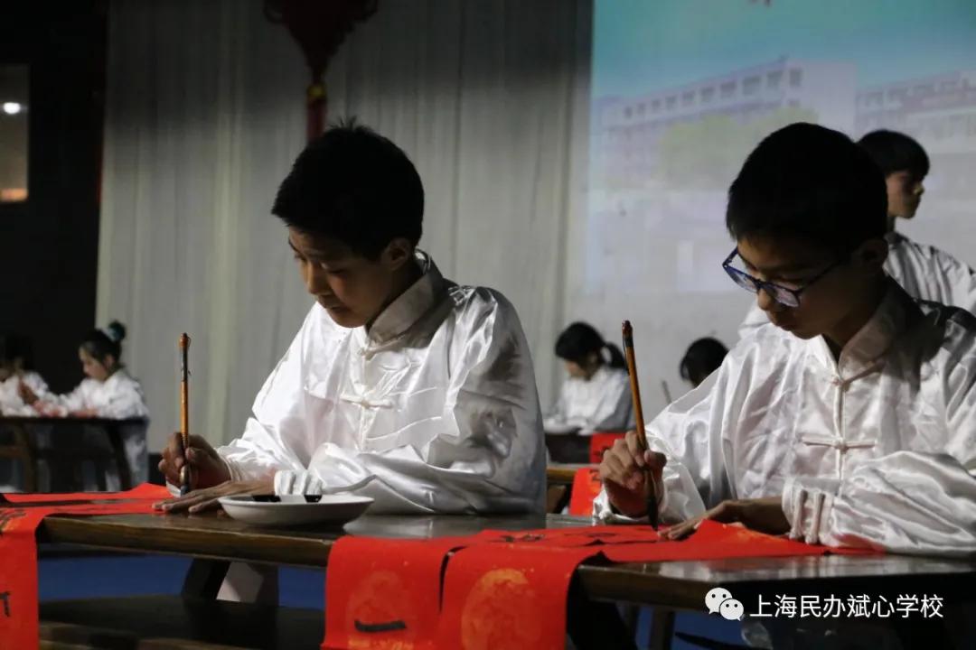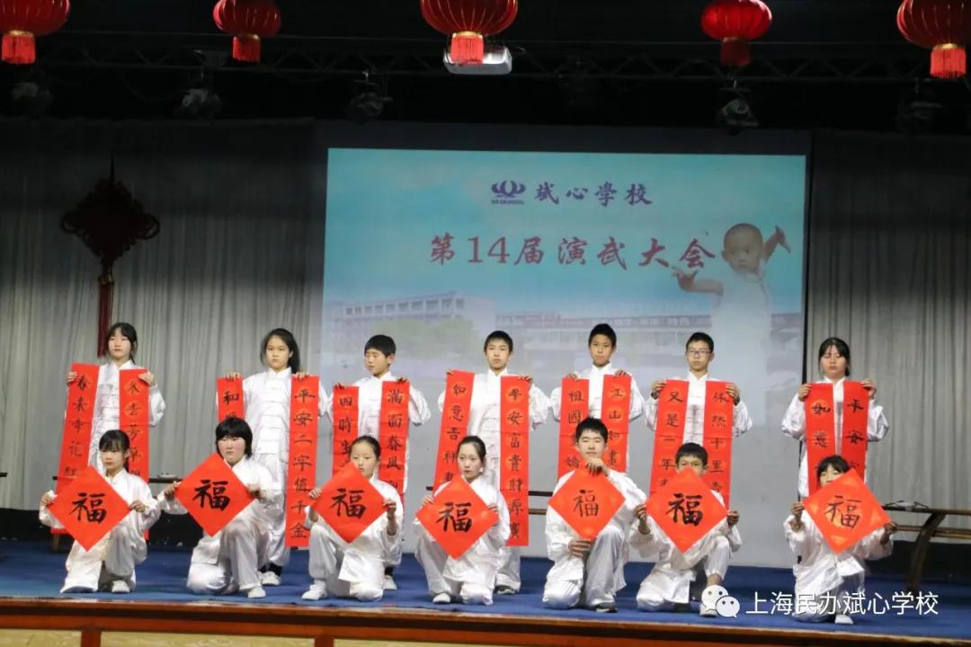 第十四届演武大会上,当然也少不了书法班的节目。临时选了十四位同学上节目。看到他们用心地在舞台上展示他们半年来的写法水平。墨香在红色的纸上欢快流畅地起舞,不急不躁地沉浸在书法的世界里。看到孩子们的成绩,老师都为他们感到高兴。也希望他们在书法的道路上有更好的表现,有更高的艺术修养。