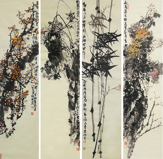 四君子/梅兰竹菊:34cm×138cm×4