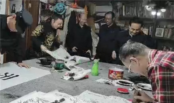 (张清峰3月14日报道)农历二月二“龙抬头”这天下午,中国榜书艺术研究会和北京龙文化促进会在北京举办“龙抬头庆吉祥”活动。到场的榜书艺术研究会的领导有副主席兼秘书长苑建国、副主席周桂禄、宣传部主任张清峰、理事王炳新、李建立等。龙文化促进会的领导有会长龙黔石、副会长屈秉权、李慧芳、潘万里、薛增起、冉崇华、冯成平,副会长兼秘书长啸龙,理事金克强、周恩丞、青林海、李景松等共50余人。