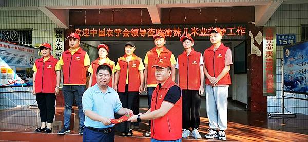 9月24日下午,中国农学会科普处处长边全乐研究员在涪陵区龙潭镇向重庆渝妹儿科普兴农分队举行了授旗仪式,渝米集团副总经理任浩淼接旗。