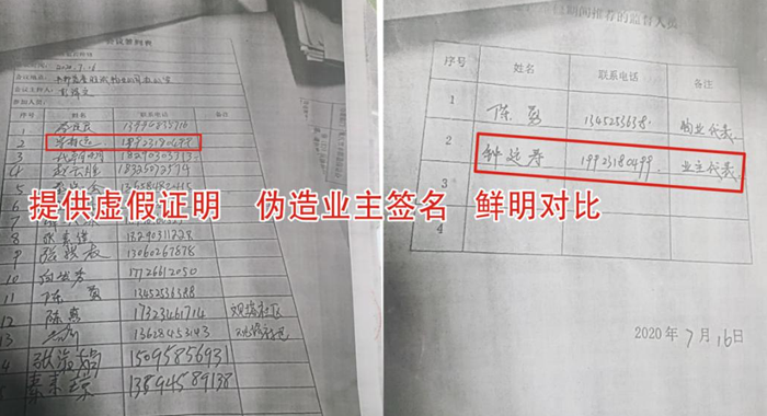 邓荣还勾结他人作虚假证明,伙同他们共同骗用大修基金。其控制的物业公司这些年一直没向业主公开账目,没有开据过正式发票,存在严重偷税漏税行为。为达到套用目的,他们还伪造业主签名,把宗寿远写成钟远寿,而不是本人签名。在所谓的研究大修基金使用的会议中,参会签名的15人中,其中9名不属于临时业委会成员,而是物管公司工作人员、保安等不具备签名资格的人员。记者杳阅重庆市物业专项维修资金管理办法总则,《办法》大修基金使用方案需公示五天,要获得业主人数的三分之二和房屋建筑面积三分之二的业主通过才能使用。
