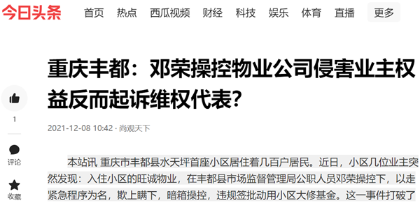 重庆丰都:邓荣操控物业公司侵害业主权益反而起诉维权代表?