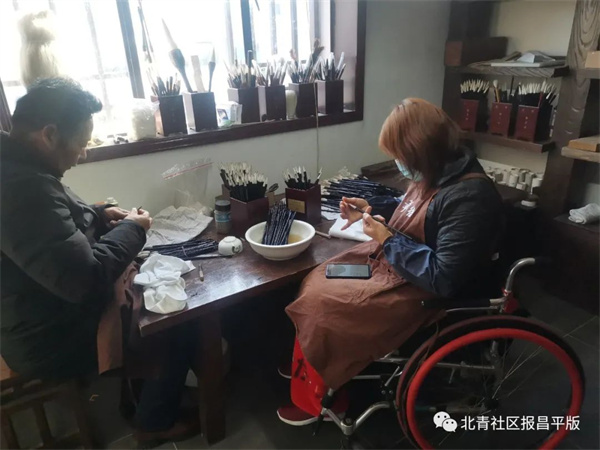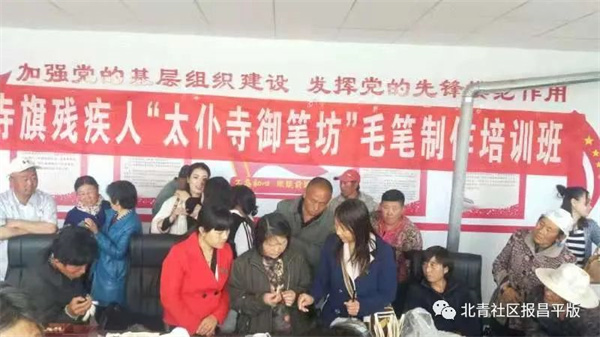 2019年11月,御笔坊在河北省怀来县五福养老院残疾人创业基地开办了毛笔技术培训班。