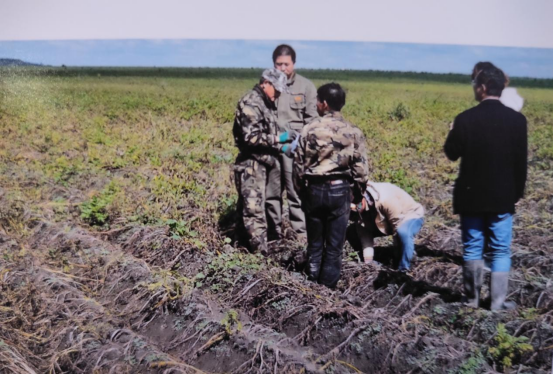 2020年7月24日,贾场长在秋实公司马铃薯土地的西北角发现了土豆叶子发黄、有早衰的证状,紧急的联系了李博,李博联系总部有个叫吴会生的人在7月26号来到地里看了下说:是得了枯萎病。安排秋实公司打了“甲基硫菌灵”的药品,随后不但没有控制住,枯萎的面积反而在不断扩大。