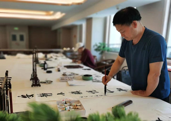 在创作现场,书画艺术家们挥毫泼墨,用饱满的热情和崇高的敬意挥洒着对退休老兵的爱戴。艺术家们一边挥毫创作,一边向退休老兵们讲解书画知识,传授书画技艺。一幅幅书画作品满含激情,笔墨精湛,或抒发爱国情怀,或讴歌军民鱼水,或描绘壮美山河,共同表达了对“军民团结一家亲”优良传统的传承和对退休老兵的挚爱之情。活动中,书画艺术家们现场精心创作了30余幅书画作品,以此向“最可爱的人”致以最崇高的敬意和最真挚的节日祝福。