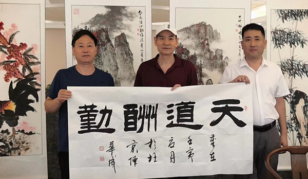 8月1日,由中国书画界联合会副主席兼秘书长李云龙组织书画艺术家们走进悦之府国际退休村,开展“庆建军95周年‘八一’翰墨谱华章”书画笔会活动,出席活动的嘉宾有: 中国书画界联合会副主席兼秘书长、理事、中国书法艺术研究院副院长兼秘书长、理事李云龙;中国书画界联合会理事会常务理事、中国书法艺术研究院副院长陈华成;中美文化大使周鸿儒;中国书画院院士、中国书法艺术研究院理事、墨腾书画院副院长刘玉阁;国礼画家、国家一级美术师、北京书画院艺术联盟主席团 执行主席王世军;中国书法艺术研究院会员刘寅峰等老师和悦之府国际退休村员工共同举办此次活动。以翰墨丹青为这里居住的退休官兵贡献了一场视觉盛宴,送上节日的祝福,受到退休官兵的热烈欢迎。