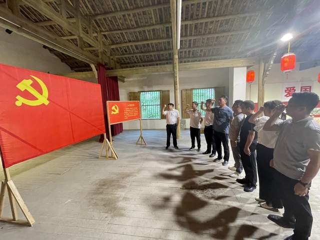 在红军大礼堂,全体党员及入党积极分子在支部书记饶长青同志的带领下,面对鲜红的党旗,举起右手,紧握拳头,掷地有声地重温了入党誓词,自觉肩负起不忘初心、牢记使命的时代重任。