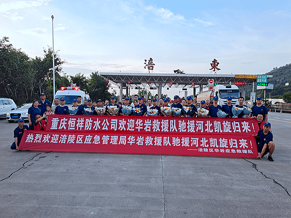 “洪水无情,华岩有爱”8月6日,来自重庆市涪陵区华岩应急救援队与永川区华岩应急救援队的14名队员在奔赴河北涿州抗洪救灾圆满完成任务后平安凯旋,在涪陵东高速收费站出口,受到华岩队员们及社会各界人士的热烈欢迎。涪陵陈氏宗亲会还特别邀请凯旋归来的英雄们到陈家大院(江湖菜)餐厅免费共进晚餐。