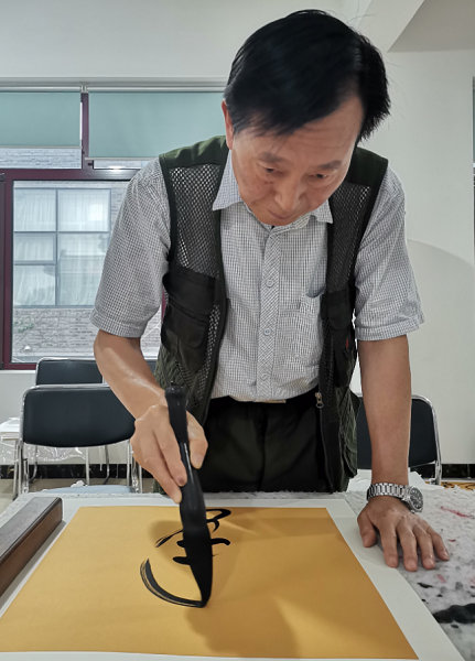 中名联签约国礼书画家高华强老师在中名联国防办公区创作国礼作品