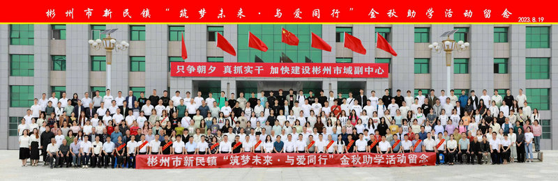 2023年8月19日上午,陕西省咸阳市彬州市新民镇人民政府联合彬州市慈善协会成功举办了“筑梦未来 与爱同行”金秋助学活动,全镇2023年考取本科及以上高校的200名新生得到了14家爱心企业捐助的24.65万元资助。咸阳市乡贤协会副会长田文斌、咸阳市品牌建设促进会副会长许衙评代表协会应邀和镇全体领导干部、各村(社区)和辖区学校主要负责人与受助学生及家长约300余人参加。镇人大主席焦婷主持活动。
