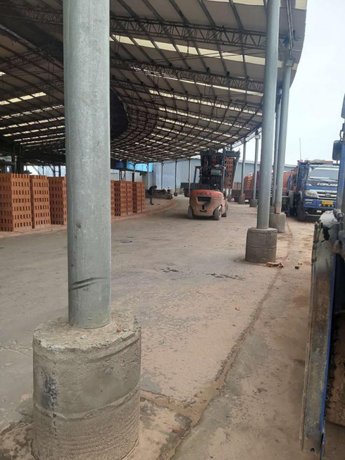 位于谢桥镇兰庙社区的宏创建材厂,据航拍图显示,确实占用了村内道路,在厂区门前,堆放着大堆的煤矸石和泥土堆,据称这两大堆物体占用了是村内的耕地。厂内生产的“砌块”显现出明显的“红砖色”,在厂区后面,两台挖掘机正在大坑内不停地挖土,不过据称,该两个大坑是当地村民挖鱼塘,而挖出的泥土则售卖给宏创建材。