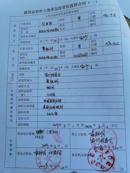 四是关于土地问题。我们家的土地面积8亩多也被人改成4亩多,后来重新确权也是8亩多。农业税收与粮食产量都有问题,也不让查,也是说时间久了,不予受理。而且在没有经过我们同意的情况下,村干部私自将我们家的土地流转,找领导说时间长了查询不到。