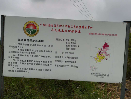 当地农民把基本农田建设得非常漂亮,全国各地的游客到了进德镇各乡村观光旅游,都流连忘返。还没有征收前,往届政府都在每个村委立基本农田保护区的实名牌匾。我们只拍照了几个牌匾,作为实物见证。长期以来进德镇是柳江区最大的水稻种植区,最大的产粮大户,在西南喀斯特地区来说很少有这么好的水溪流淌的水稻种植平原地区。在手机百度里,都可以搜索到有关柳江区(原来的柳江县)进德镇的真实写照,以前流传的柳江县一都米指的就是现在进德这地方。