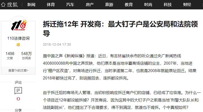 拆迁拖了12年,开发商:最大钉子户是刑警大队长和法院副院长