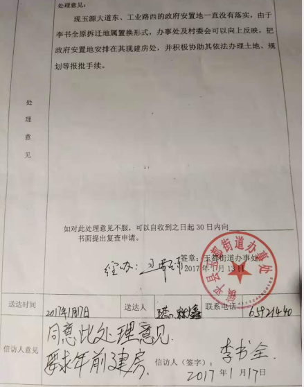 经县里和玉都街道协商,同意将他们一家安置在新城路西边,让李书全建房(见上图)。全家在吃苦受累的情况下,东挪西借,在亲朋好友的帮助下,于2017年在玉都街道安置的地方将房屋建好。新建房屋被拆 双重损失打击