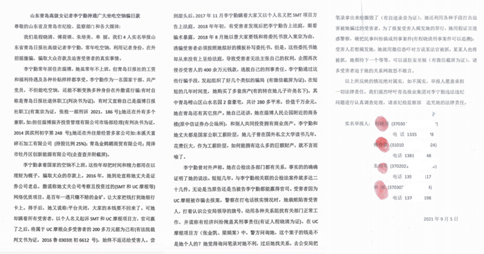 以上所反映的情况绝对属实,如不属实,举报人愿意承担一切法律责任。我们强烈呼吁青岛报业集团对李宁勤违法违纪问题进行认真调查处理,请求纪检监察部门追究她的法律责任。