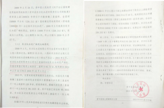 在描述东方红水泥厂的租用地情况时,有这样的内容:2011年2月,红方红水泥厂有限责任公司与三皇庙村8社及11社村民严顺红、刘昌见等签订租用土地协议面积为85.72亩,租用期自2011年2月22日起至2029年12月1日止。