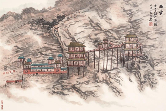 近几年他多次前往全国各地游、观、悟、记,写生采风,无论从巍峨雄壮、岩峦万嶂的太行山、泰山、华山、恒山,到婉约秀丽、青山如黛的广西桂林、广东惠州、重庆山城,到自然质朴、古韵幽幽的湖北宜昌三峡、四川自贡古盐都,再到神秘悠远、沉雄厚重的广安神龙寨,最后到规模宏大、佛光沐浴的五台圣境,自始至终都贯穿着“游观悟记”与“矿物质颜料在山水画写生中的应用”这两个他所研究的课题,他在不断的写生探索和融合中逐步形成了自己独特的写生语言和艺术风格。