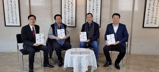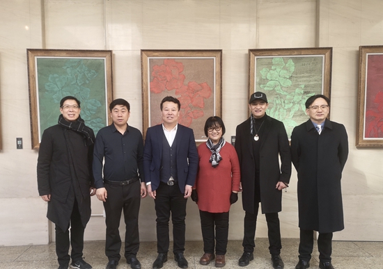 北京时代京辉文化有限公司董事长魏福良,著名艺术家袁小楼,北京鸿蒙伟业科技有限公司董事长汪超合影