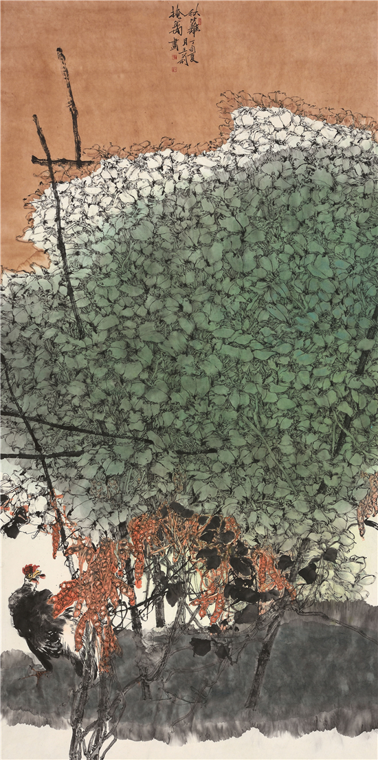 2017年9月,《秋篱掩禽》入选“壮美内蒙古 亮丽风景线”第十届中国西部大地情中国画、油画作品展
