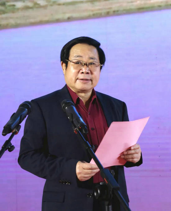 参展艺术家代表,山东艺术学院教授、山东省中国画学会副会长梁文博致辞,分享了他作为参展艺术家,实地考察黄河生态、参与采风的深刻体会。他表示,艺术家们从山东菏泽东明黄河入口起到东营黄河入海止,对黄河山东段的戏曲文化、武术文化、近代红色革命文化、湿地保护生态文化等有了系统认知,感受黄河千年滋养华夏生生不息的生命历程,看到沿岸黄泛区人民为国家利益顾全大局,看到历代文人志士为治理黄河做出的贡献,看到党和国家治理黄河的显著成效,作为艺术家,有责任延续历史文脉、讲好黄河故事,用艺术精品奉献人民。