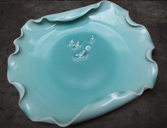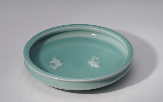 李震复制其曾祖父为前苏联最高领导人斯大林生日创作的青瓷作品"云鹤盘"