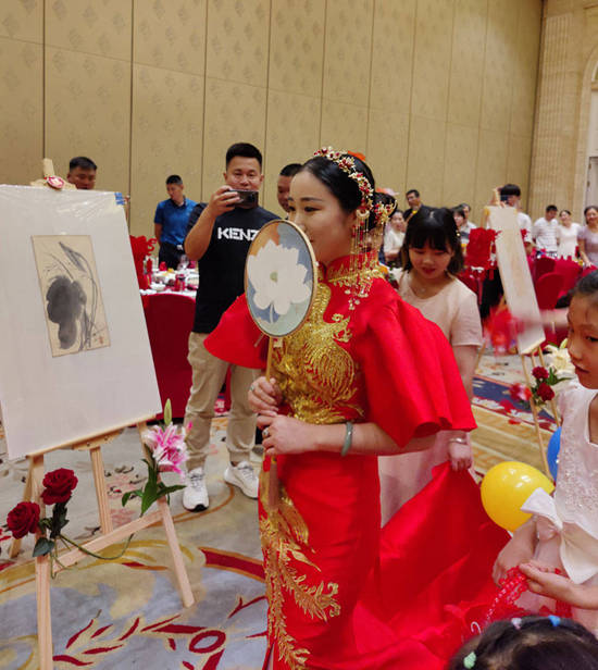 “我看到今天展出的作品突出了“莲”和“竹”,它们自古就是中国传统文化经典载体,特别是“莲”被赋予其很高的宗教气节,譬如周敦颐就有《爱莲说》。从韩残沙的笔墨中我读出了一位画者对自然的敬畏,给我们在繁杂喧嚣之余带来一丝清凉。”学院派立卦者正圆子现场盛赞韩残沙的作品典雅正大,并坦言虽然自己一直致力于非遗文化研究,走过了80多个国家,参加过很多的盛宴和展览,但是参加这种婚礼形式的画展雅集还是第一次,这种文化传承与输出的形式融入社会大众很接地气,它激活了传统,具有多元交流的意义。