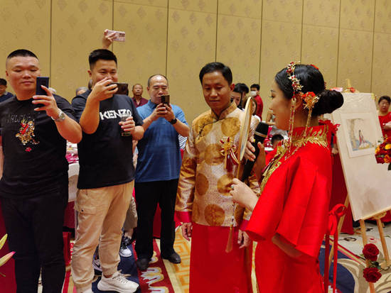 本次艺术雅集也是韩残沙先生的婚礼喜宴,雅集内容涵盖诗歌朗诵、国学经典文化分享、琴曲、花道、茶道、丹青笔会、并蒂莲花喜宴、长卷祈福等多个板块。采用这样一种别具一格的中式艺术雅集婚礼,是一对新人面对尘世喧嚣的自我慰藉方式,也是古为今用的东方现代时尚讴歌,为炎炎夏日带来一丝无上清凉。
