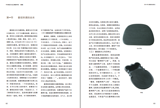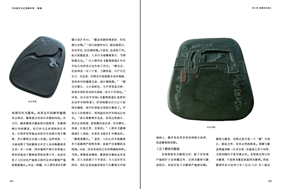 《歙砚》简 性、歙砚的制作技艺和歙砚的鉴赏收藏等内容,具有较高的专业性、史料性、学术性和可读性。书中一些新的内容,令人注目。例如对明代龙尾石有无开采的深入研究论断;对历史上悬而未决的龙尾石中庙前青、庙前红的具体产地,以实物的研究、实地的勘察而得以确定;还有歙砚的三要素、龙尾石的三大特征、砚的实用与欣赏、歙砚造型的分类、雕刻图案形式的分类、砚的雕刻手法和雕刻艺术的论述等等,无不令人信服和受益。