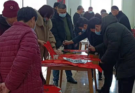 山东新闻网:(刘延栋  吕英杰)春节是中华民族祈福迎祥的传统节日,贴春联则是中国人过春节的文化传统之一,写春联,送喜庆,更是弘扬中华民族优秀传统文化的良好形式。1月29日,山东省聊城市市直书画家协会技师学院分会的几名书法家与聊城市技师学院工会的领导们一起来到九州国际社区和金柱东苑小区开展了“迎新春,办实事,送温暖”主题活动,希望通过这种形式,让更多群众感受春联的魅力,营造新春喜庆祥和的气氛。