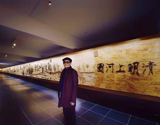 历任故宫博物院书画部主任,现为国家文物鉴定委员会委员、故宫博物院研究馆员、开封市清明上图研究会会长先生余辉看罢黄花梨木雕《纪智补全版清明上河图》感慨万千,欣然命笔,题词寄情,为“聚典阁主人”赞叹不已:“纪智先生补全清明上河图乃黄花梨木雕,逾四载而成。纵近百米,横约二米,为当代艺术精品。今悉品赏,叹为观止。谨书寸言而贺之。”