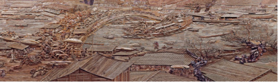 尤为惊叹的是纪智补全版《清明上河图》组画“一楼两桥”,作为聚典阁重点推出的系列文创产品之一,集中选取了北宋时期宏伟建筑“一楼两桥”——“城楼、虹桥、州桥”的素材,很好地诠释了北宋时期的经济富裕的可望可攀,国防强大的可喜可期,文化昌明的可歌可泣,人本关怀的可亲可敬,让有识之士壮心不已,在市场上好评如潮。