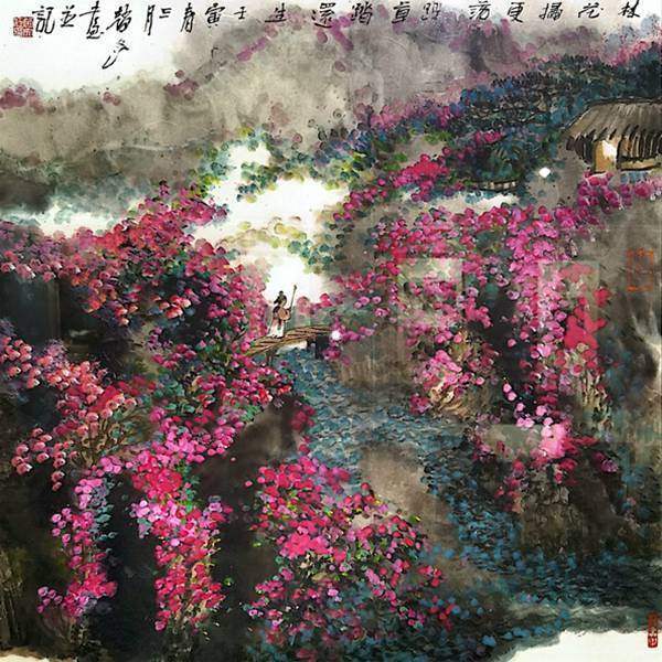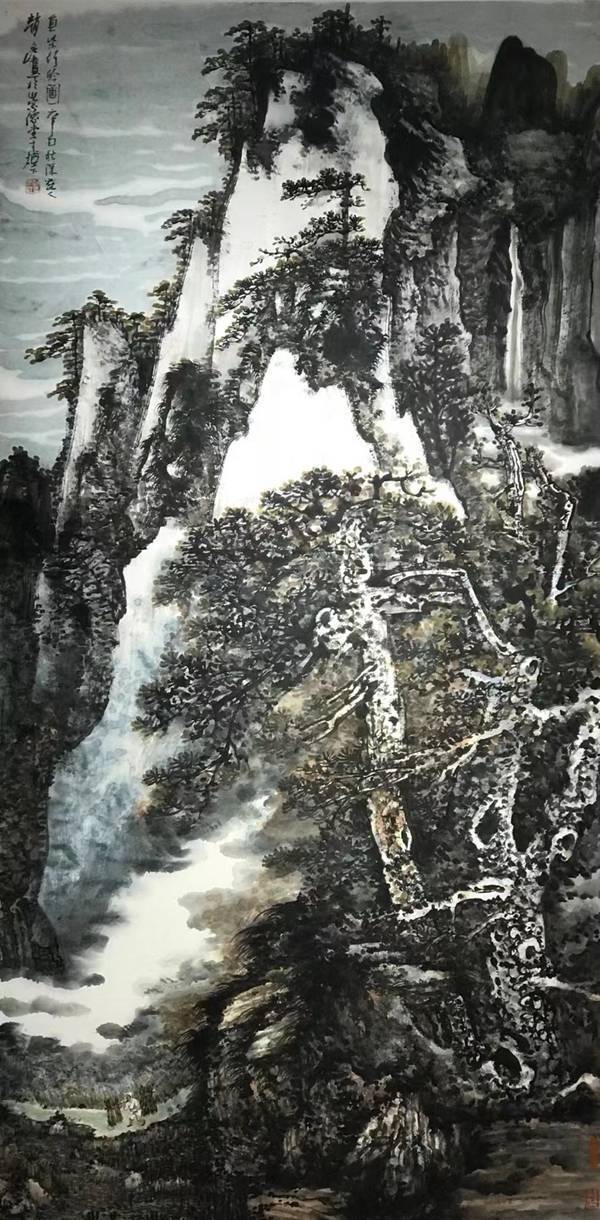 赵文江先生是85级浙江美院山水专业本科,后负笈东瀛获硕士学位,曾在京都造型艺术大学任教。回国后长期从事山水画创作,先后在多个国家举办个展,现在是中国艺术研究院国画院创作研究员。赵文江先生的山水画雄浑大气、激情磅礴,在呈现自然奇伟壮观景致中给人一种视觉张力的审美期待。从他苍厚和烟、温润华滋的皴擦点染及起承转合中,可见意蕴之妙、物象之道。近年来写生的新作更注重书法性用笔的变化与表现,个性化的五笔七墨独创写意山水之新格。作品既有南派灵秀之生动气韵,又有北派山水阳刚之沉雄苍厚、亦苍亦润,文质相含。