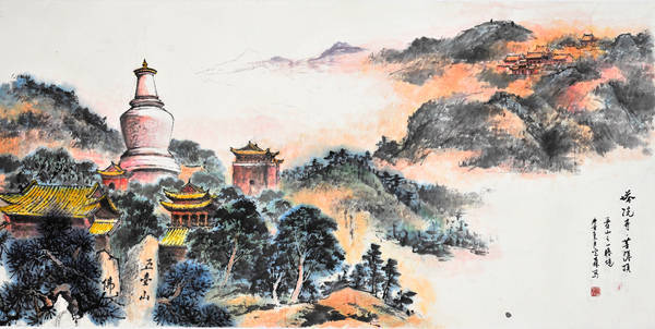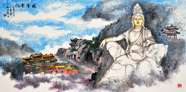 端砚与佛教结缘,早在宋代就已经开始,此后便一直绵绵不绝。其图案主要为两种类型:一种是雕刻佛教人物形象,如佛祖、菩萨、罗汉等;另一种就是雕刻佛教寺庙建筑。这套“百刹砚”属于后一种类型。虽然古已有之,但是纵观古今我国各个砚种,还不曾有哪一个砚种将全国各地著名寺庙纳入自己的创作中。所以,这套“百刹砚”是既有继承又有创新的。这不仅是敢于构想扩大数量的简单问题,其间还需要走访这些散布在我国四面八方的古代名刹,仔细观察体验,绘制这些古代名刹独特风韵的图案。这是一项需要时间,更需要艺术匠心并付出艰辛劳动才能完成的工作。韩光森先生是个有心人,作为山水画家,他早就敏锐地感受到了古代佛寺建筑与山水风景的密切关系,因此在他几十年的绘画生涯中,已经积累了许多佛寺建筑和山水名胜相结合的作品。正是有这样一些作品为前提,所以才会有这个“中华百方古刹传世精品端砚”的创作实施。