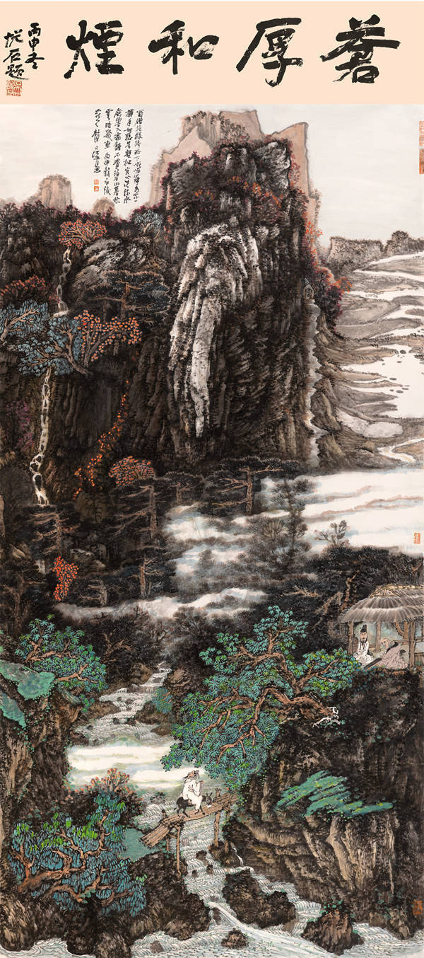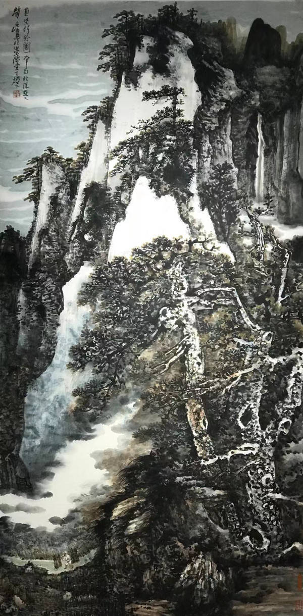 中国的传统绘画浩瀚几千里,纵横数万卷,其中真正能够在历史的巨流中脱颖而出,必定都是那些独树一帜的艺术作品。赵文江的绘画艺术古朴典雅,雄浑壮阔。在赵文江的绘画艺术中。我们看到的不仅是祖国壮丽的山川,平流的江河,还有画家贯注在其中的开阔胸襟和高远的目光。他创作山水画的视点有许多都是在仰望崇山峻岭,给予了他对祖国山河的崇敬与爱戴。我们中国人论说艺术,讲究知人论世,信奉文如其人,画如其人。赵文江的艺术创作道路并不平坦。他曾经遇到过各种各样的困境,然而这一切并没有动摇他艺术创作的雄心,没有改变他为人处世的信念。人生道路和艺术的道路,不仅为他的创作提供了取之不尽的素材和资源,而且也历练了他遒劲的笔法和刚劲的笔意。