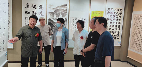 书画展开幕式由全国金话筒提名奖、淄博市女子书画协会主席宋文静主持。 淄博市人大原第一副主任、淄博市老年书画协会首席指导刘池水,民建淄博市委会副主委、二级调研员林治国,淄博市文联党组副书记、副主席吕德民,中共张店区委常委、统战部宣传部部长刘静,淄博市团市委党组成员、青少年宫主任韩其东,淄博市非公有制经济组织党委副书记高峻,张店区文联副主席宋永照,淄博美协名誉主席王立华,山东省书协主席团委员、山东省青年书协主席邹方臣,淄博市书协副主席张伯祥,淄博市青年美协主席杨忠奎,淄博市青年美协名誉主席范磊,华夏孝文化研究会会长翟焕远,韩国国际青少年文化学术交流协会副会长周永刚,韩国大丘医疗观光产业咨询委员张世焕,中华民族传统文化促进会主任张林东,中国民间收藏研究会常务副会长兼山东分会会长姜蓓等领导出席活动,及艺术家代表与驻淄企业商会代表二百余人应邀参加了活动。