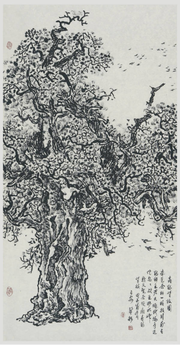 梁耘作品《喜鹊登枝图》 入编《长安档案》 69cm×138cm,纸本水墨,2008年