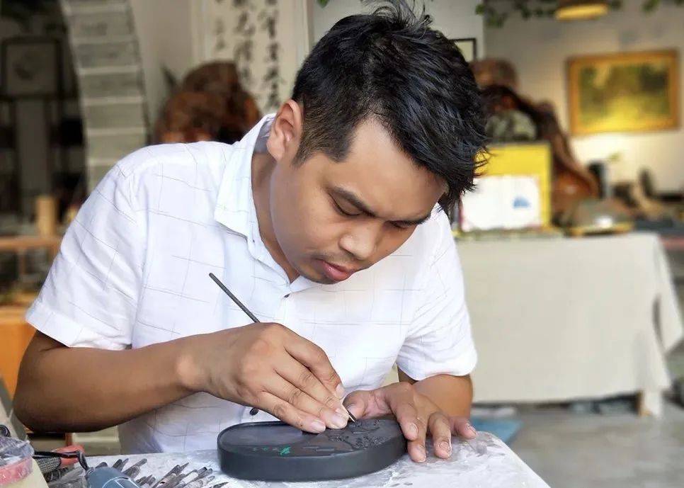 朱国彬,中华砚雕师、玉山雕刻大师。自2016年春返乡创业,在玉山县七里街创办了三清砚堂(又名朱国彬砚雕艺术馆),见证了“十三五”期间玉山罗纹砚产业由弱到强的发展进程。现任有着“中国罗纹砚之乡”的江西玉山县三清砚实业有限公司总经理、玉山县雕刻艺术家协会副会长,长期致力于罗纹砚的研究、制作与产业开发。为砚文化的宣传、推广做出了积极贡献。
